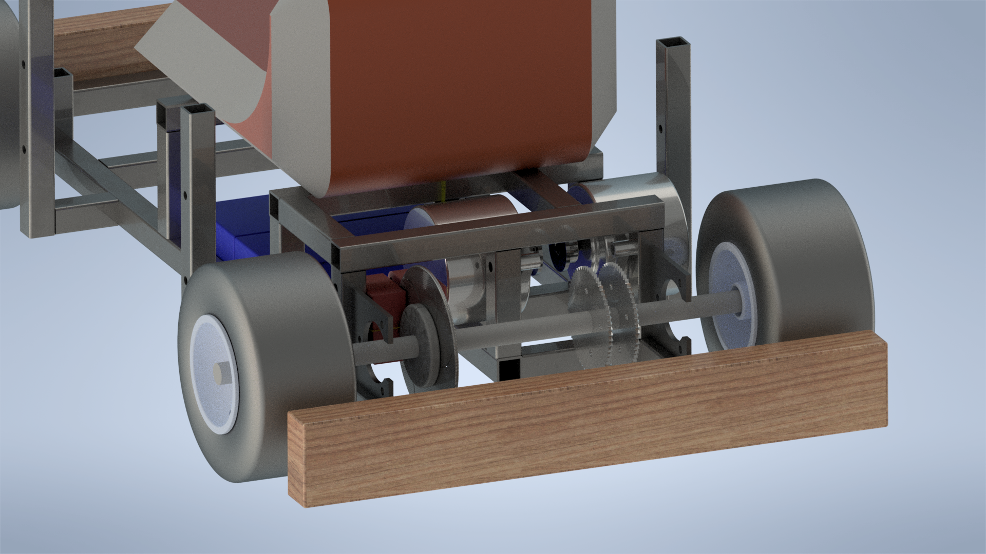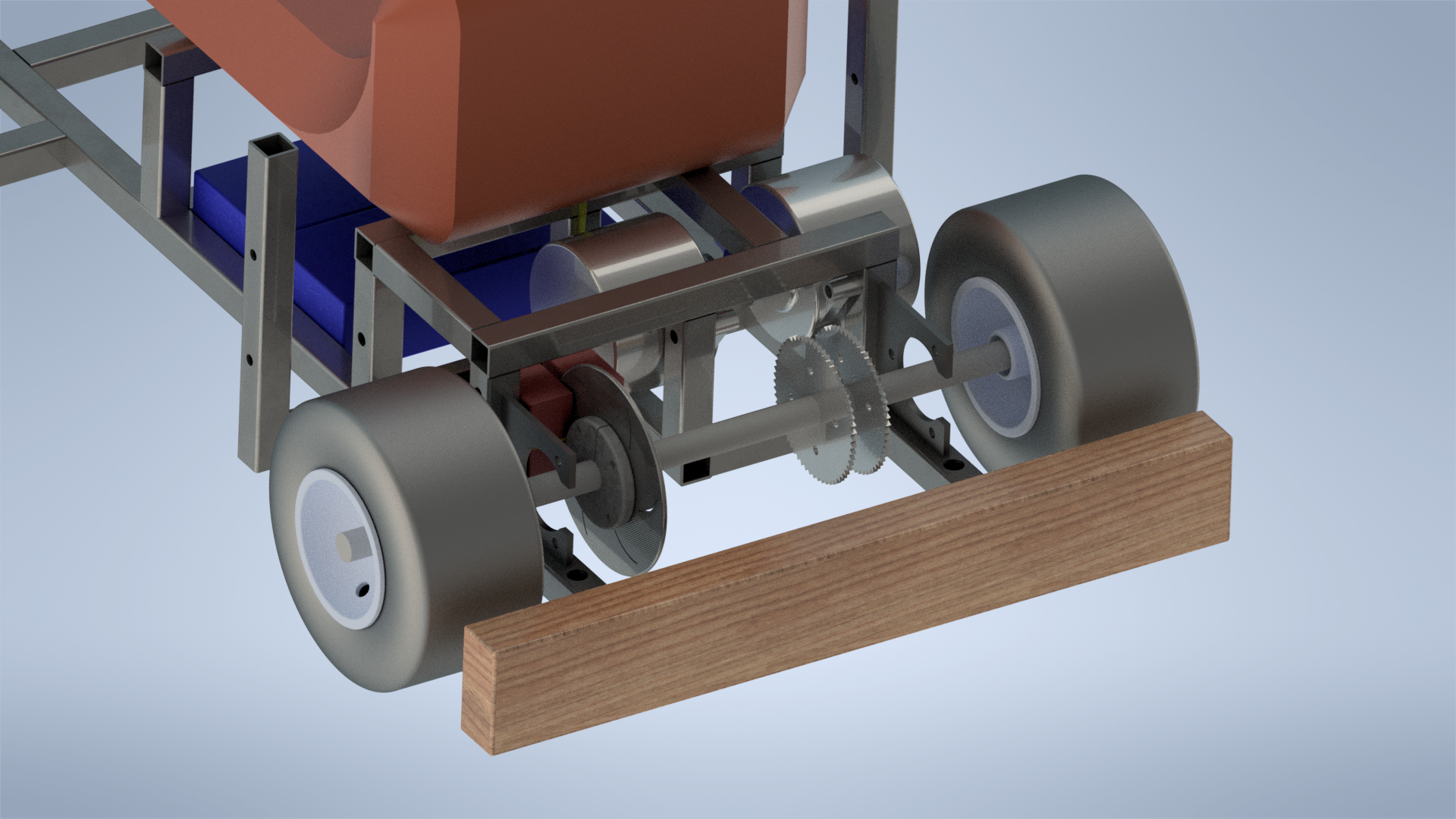 Here are a couple renderings showing the rear drivetrain assembly for the go kart: